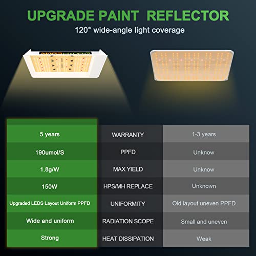 • 2022 UPGRADED HIGHLY-REFLECTIVE HOOD LED LIGHT: The upgraded white reflector design on TS600 grow light is patented, With a refraction angle of 120°, it can cover a wider reflector range to enhance its light intensity as well as assist plants in absorbing more light. The actual power of TS600 is 100 watts, while other brand model 600 is only 60 watts.