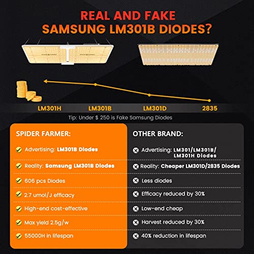 - 【TOP NOTCH QUALITY LED GROW LIGHT】: Use Samsung LM301B diodes; full spectrum light ideal for all stages of growth; adjustable light intensity with dimmer switch; protective coating on LEDs helps extend the lifespan; no fan, zero noise. Only consumes 200w, running 50% less power than the HPS or Blurple lamps. This light delivers a powerful light output and uniform canopy penetration resulting in maximum yields.