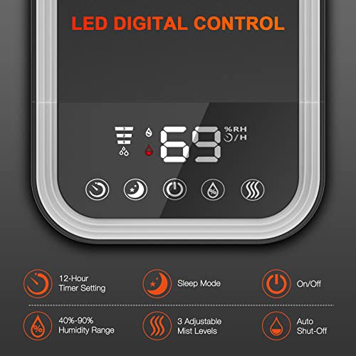 - Touch & Remote control: You can operate it manually or with the equipped remote control, and at a low water level, this no-noise humidifier will automatically turn off with the red indicator light on.